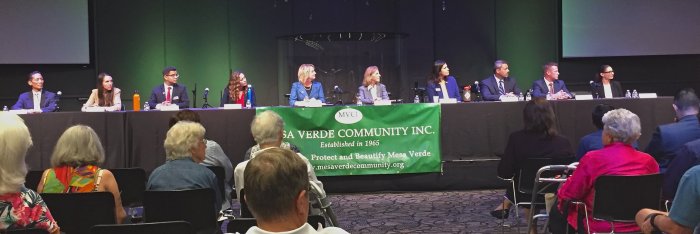 The 17th Mesa Verde Community Inc. Candidate Forum is in the books! Or, as Geoff West said, “in the can!” Over 100 people were in attendance and all 8 candidates running for City Council seats and both Mayor candidates were present, as well. The Forum was recorded by Dane Bora’s team at CMTV and will be available for viewing in a few days; we’re told it’ll likely be Wednesday the 10th.